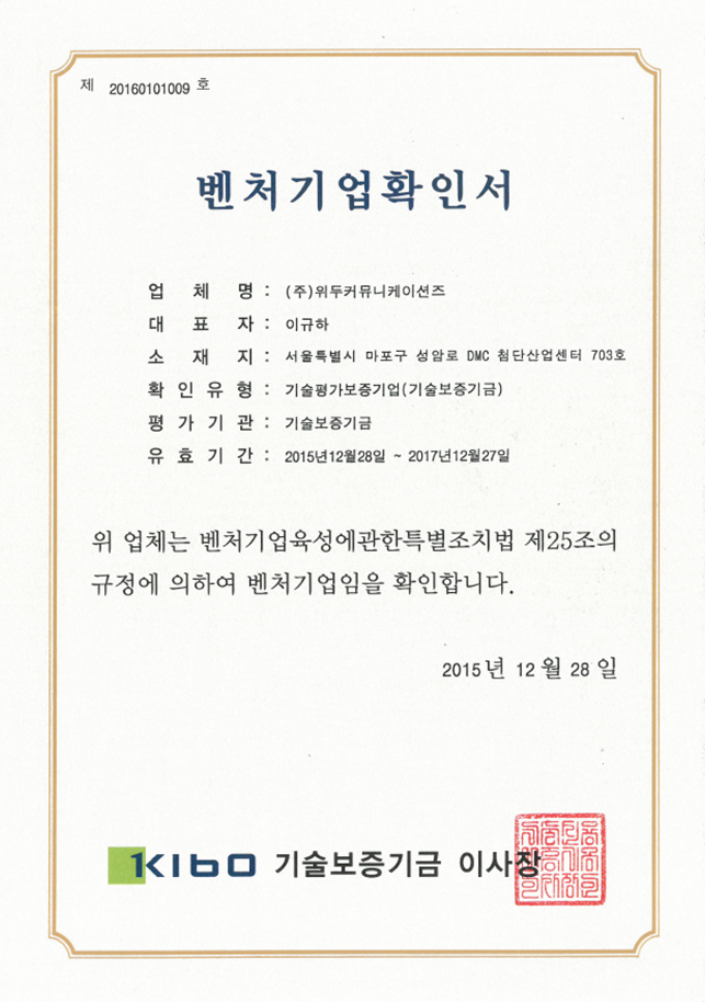 ㆍ 기술 신용 보증 – 벤처기업 인증