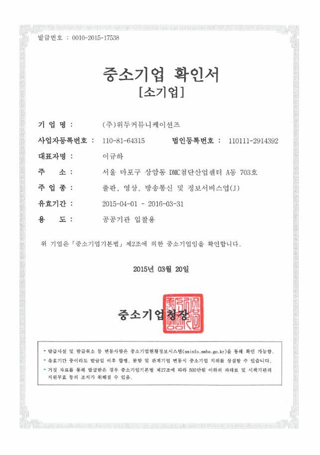 ㆍ 병무청 병역 특례업체 지정