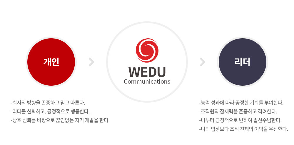 CUSTOMER(고객중심) : 위두인은 개발자가 아닌 고객 관점에서 고객의 기대를 선도하는 서비스를 제공한다.