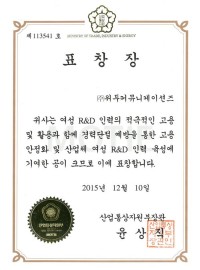 Ministry of Trade, Industry and Energy Award Certificate