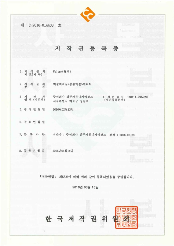 [한국/저작권] 월터 페이지 정보 작성자 WeDu 댓글 0건 조회 6,031회 작성일 19-05-30 19:09 본문 2016-06-15 저작권 C-2016-014403 월터 / 미술저작물>응용미술>캐릭터 List Previous[한국/저작권] 파벨 19.05.30 Next[한국/저작권] 필립 19.05.30